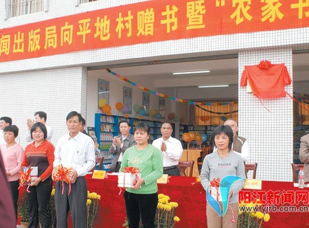 本报讯(记者 胡小升 通讯员 梁小昌)元宵佳节,阳东县北惯镇平地村村民收到一份丰厚的“精神食粮”——昨日上午,省新闻出版局专程从广州给平地村农民捎来了2600册图书,占地96平方米的平地“农家书屋”随之落成(如右图,周辑 摄)。自此,该村2300多村民在家门口就能享受到精神食粮! 上午11时,省新闻出版局向平地村赠书暨“农家书屋”挂牌仪式在平地村举行,省新闻出版局副局长杨广锐,局党组成员、副巡视员洪伟俊,省出版集团有限公司董事长黄尚立,省出版集团有限公司副总经理、新华发行集团董事长杨世华等和市领导陈芝岳及市有关部门负责人来到了现场,杨广锐和陈芝岳为“农家书屋”揭牌。 省市有关部门赠书3400多册 杨广锐说,建设“农家书屋”,是新闻出版系统在全国范围内实施的一项系统工程,目的是通过在乡镇村庄建立农民自己管理、自我服务的自助读书组织,为广大农民普及科技知识,传播先进文化,提供精神食粮,体现人文关怀,努力满足广大农民精神文化需求。 从2006年起,省新闻出版局积极探索建设“农家书屋”路子。先后发动出版发行单位,筹集资金5万多元,购买了书架、阅览台、椅子等配套设施,同时捐赠农业科技、卫生保健、少儿读物等各类图书2600册,市委宣传部也发动社会各界捐赠图书800多册,共同建设了平地村“农家书屋”。据悉,这是全省第二家“农家书屋”。 据介绍,“十一五”期间,我国将建设20万个“农家书屋”,切实解决农民买书难、借书难、看书难问题,逐步建立起为农民“出书、供书、读书、用书”的长效机制。杨广锐表示,下一步将总结各地“农家书屋”建设经验,制订规划,在全省铺开这项工作。 推进“农家书屋”建设工程 副市长陈芝岳在讲话中表示,“农家书屋”是一项面向广大农村,面向基层农民的公益性文化工程,一定要用好“农家书屋”,发挥“农家书屋”的阵地作用,推动农村学习型社会建设,使书屋成为宣传农村政策法规,提供市场信息,传播农业科技知识和开展三个文明建设的主阵地,为建设新农村提供科技支撑、智力支持和人才保证。他说,要在全市范围内全方位推进“农家书屋”建设工程,使其成为我市新农村建设的一个亮点。希望全市各级政府,特别是宣传文化、新闻出版部门要进一步推广落实“农家书屋”建设,以多种途径整合资源,统一规划,分类实施,充分发挥其提高农民素质、促进农村经济发展的作用。 有望成为村民“致富加油站” 简短而隆重的挂牌仪式刚一结束,聚集在文化室前的群众就按捺不住心中的兴奋,纷纷走入“农家书屋”瞧个新鲜。宽敞的书屋内,书架和阅览台上摆满了琳琅满目的图书,崭新的书籍,靓丽的画面,丰富的内容,吸引了大批群众边走边看。两名40岁左右的中年妇女径直走到“医药卫生”类书籍前,分别从书架上拿出一本厚厚的《家庭常见病调理食谱》和《家庭急救120》,津津有味地翻阅起来,一边看书一边交流,脸上流露出喜悦。其中一名自称姓王的妇女高兴对记者说,眼前这些书籍很实用,内容十分丰富,今后一有空她就会来书屋看书、借书。平地村党支部书记、村委会主任郑道宏说:“‘农家书屋’在我们村设立,村民看书难、借书难的问题解决了。”它让村民足不出村就能从书中学到法律、经济、政治、卫生、文体、农业技术等多方面的知识。希望“农家书屋”成为一个服务村民的窗口,成为村民的“致富加油站”和“精神乐园”,让村民们能在这里学文化长知识,学科技奔小康。