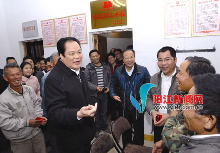 昨日,阳江天气骤然变冷,最低温度降到了7℃左右。下午,带着省委省政府主要领导的嘱托,省委副书记朱明国率省慰问团到我市阳东县大沟镇新梨村开展“送温暖”活动,看望慰问困难群众、困难党员和老劳模,通过他们并向全市广大群众致以新春的美好祝福。