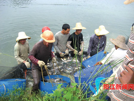 图:在帮扶单位支持下,阳东县合山镇那石村贫困户养鱼喜获丰收。