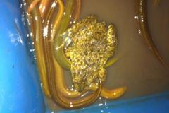钓鱼钓到黄鳝,头上长出鼓包很像“..
