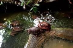 半水龟的水栖环境一般都是用来龟龟泡澡和喝水的。一般来说大部分的半水龟的游泳技能是比较差的,所以我们在设置水栖环境的时候要注意水位不要太高,以免龟龟呛水。要勤补水、换水,长期保持龟龟用水量的充足。泡澡的作用跟陆龟泡澡差不多,半水龟养成泡澡排泄的习惯对饲养者而言是很有益处的,便于管理龟龟..