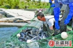 渔场工人打捞鲟鱼,准备装车运往北园春农贸市场。张莉摄新疆网讯(记者张莉)达坂城区地产鲟鱼首次出现在乌鲁木齐农贸市场。6月14日,记者在达坂城区西沟乡雷家沟村九队养殖大户郭存义的渔场看到,40个鱼池里养殖了鲑、鳟、鲟类等七八个品种十万余尾鱼。“我们3年前引进了鲟鱼等高经济价值的冷水鱼种,如今6..