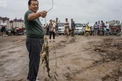 7月20日,河北省平山县,由于连续几日来强降暴雨,造成大部分地区洪涝灾害。当天下午,局部地区阴雨天气逐渐好转,水位明显下降。很多县城的居民来到冶河河滩,在冲毁的堤坝和庄稼地中捞起了因退潮搁浅的鱼。图:视觉中国河滩上淤泥、沙坑遍布,一不小心脚就陷进泥里。有居民在河滩上捞起了不少鲟鱼,据了解..