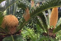 铁树难得开花铁树开花实际又分公母的雄铁树开柱状花但不结果,雌铁树开圆盘状花而且结果。