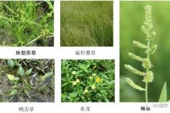 水稻田杂草的种类很多,各地杂草发生种类不同,全国稻区常见的发生普遍、危害严重的主要杂草中以稗草发生和危害面积最大,其次为异型莎草、鸭舌草、扁秆藨草、千金子、眼子菜次之。一般在播、栽、抛后10天左右出现第一杂草出苗高峰,此批杂草主要以禾本科的稗草、千金子和莎草科的异型莎草等一年生杂草为主..