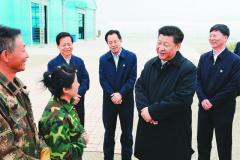 习近平在抚远市玖成水稻种植合作社向民和技术员询问水稻先进种