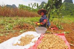 农民在采收花生。“麻屋子,红帐子,里面住着个白胖子。”花生,是人们非常喜爱的食品之一。近日,柳州市柳江县百朋镇尧治村,农民们正在忙着采挖花生,田间地头一派忙碌景象。“今年花生的收成不错!”正在地里采挖花生的尧治村村民刘秀芸笑着说,她家种植有两亩花生,估计产量会有600多公斤。她打算大部分..