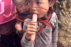 农村姐姐背着自己弟弟吃火腿肠,姐姐这个动作让13亿中国感动