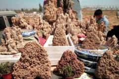 2017年6月30日,早上的农村大集还是稍微有点寒意,最近一直喜欢去农村大集淘宝贝,农村集市上物品种类繁多而且价格可以讲价,这一车是吸水石,石头上可以种植野草、苔藓等好看的盆景植物,然后把石头放入池子里,在池子里倒入水后水会沿着石头到达顶端,价格一般在300以上,不过农村路边的买卖是可以商量价..