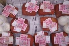 什么是压祭?就是在农村,当长者去世的时候,作为外甥和女婿的都要送“祭”,通常是拿一些鸡鸭鱼肉等,送“祭”的同时还要压祭,以前压祭通常是用纸钱,而现在压祭,很多地方开始真金白银!每人200块人民币,放在大肘子上面,图上有十个,就是2000!!鸡上面也卷着200块钱,压礼这么多的,一般是逝者的女婿..