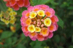 花一开便是一团,一团里的小花朵儿争相开放,煞是惊艳它的颜色并不单纯,一个花团有好几种层次的颜色,而且还会继续变色,直到凋谢最喜欢的便是浅色,很清秀。在农村里是很平常的路边野草,常年开花,经过培育,也有不少喜欢花的爱好者把它种植观赏。这种草叫马缨丹,它的果子常见颜色是绿色,绿绿的小果子..