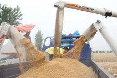 6月2日,安徽省宿州市埇桥区汴河街道杨圩村农民喜获丰收粮。埇桥区是全国产粮大区。近年来,积极推广实施良种计划,各乡镇根据土壤结构,土壤肥力,测土配方结果,精选抗病耐旱,抗倒伏,抗干热风等旱中熟优良品种,全区200多万亩小麦在历经干旱,病虫害等自然灾害的情况下,实现了稳产增产14年连续丰收,8..