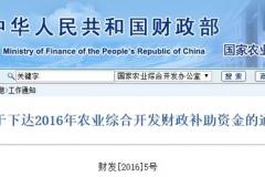 2016年中央财政农业综合开发补助开始下发,总额高达126亿