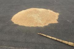 今日小编出门看到公路上有几堆小麦,旁边还坐了个老汉。小编向前问老汉,这是做什么呢老汉讲,刚刚收了麦拉出来晒晒,今天有些阴天还没敢摊开,等会看天再摊开晒晒。又问,为什么要弄到马路上来晾晒,不会被压坏了了吗,再说也阻碍交通,车子要在小麦上打滑该多危险。老汉笑到,等摊开麦子,在周围放上石块..