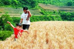 【2012年5月30日】2012年5月30日,汝阳县登山村3岁的小朋友佳佳陪伴奶奶收割麦子。佳佳出生后,父母就出去打工了,3年来,陪伴她长大,给她关爱最多的是奶奶。佳佳的奶奶说:“孩子可懂事了,她跟到地里后,还能主动帮帮我。”“等我再长大点,可以上学的时候,就能帮更多忙了。”佳佳说。曹福川 石子强 摄..