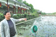熊广群在向记者介绍“青莲苑”里的荷花品种 央广网河南分网消息 据河南日报报道:让一个农民来谈谈自己的梦想,他会谈些什么呢?在他对未来的规划和梦想中,是否还有农村、农业和土地? 这个问题,对于熊广群,信阳市一个小山村里的一个朴实但不普通的农民来说,答案是肯定的。 4月..