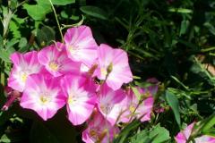“小时侯,总看到乡村田间地头生长着一种花,外形很象喇叭花,洁白的花瓣和淡粉色的花心,在野草丛中却显得格外美丽。大人们告诉我说:那叫打碗花,不能采,哪个孩子采了它,回家吃饭时就要打破碗,是要被挨打的。其实它的由来有个凄婉的故事。那就是很久以前,有位美丽的小丫鬟,不小心把财主的长寿面跌落..