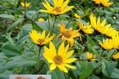 洋姜,学名菊芋,又叫菊姜、鬼子姜,是一种多年宿根性草本植物,也是一种可食用的根茎类蔬菜。洋姜之所以叫洋姜,是因为洋姜不是中国原产的,洋姜原产北美洲,十七世纪传入欧洲,后传入中国。其地下块茎富含淀粉、菊糖等果糖多聚物,可以食用,煮食或熬粥,腌制咸菜,或作制取淀粉和酒精原料。宅舍附近种植..