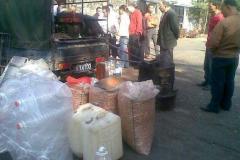农村集市大伯开辆报废车做买卖,旁边围满顾客