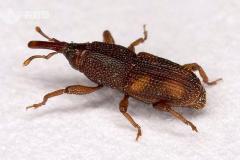 玉米象属鞘翅目象虫科,成虫食害禾谷类种子,以小麦、玉米、糙米及高粱受害最重。幼虫只在禾谷类种子内危害,是一种最主要的初期性害虫。贮粮被玉米象咬食而造成许多碎粒及粉屑,易引起后期性害虫的发生,危害后能使粮食水分增高和发热。防治方法:清洁仓库,堵塞各种缝隙,改善贮粮条件,可减少危害。改进..