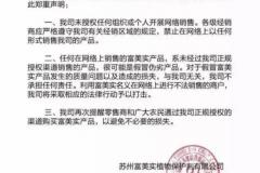 3月下旬,众多农业外企(先正达、杜邦、拜耳、富美实)先后发出声明,公司没有授权任何组织或个人开展网络销售,建议合作伙伴和广大农户通过正规渠道购买产品。随后国内知名农业企业,如上海生农生化、海南博士威、华北制药集团爱诺、利尔、美邦、汤普森、上格、海利尔、新禾丰等也跟进发布了类似声明。富美..