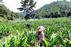 连片姜黄长势喜人。 近日,记者驱车2个多小时,翻山越岭来到大山深处的晋安区日溪乡井后村姜黄生产基地。山边一望无际的田地上,绿油油的姜黄长势喜人,20余名村民正在田里忙着除草、浇水(如图)。眼前这一派清清爽爽的田园风光,让人很难想象,过去这里入村闻猪叫、处处污水流的景象。 井后村..