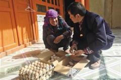近年来,海东市互助土族自治县畜牧业品牌“葱花土鸡”已成为家喻户晓的“名牌”,成为贫困山区农民脱贫致富的又一条有效途径。葱花土鸡的养殖已经从合作社养殖扩大到整个海东和贵德、同德、尖扎、大通等地区,全省的养殖数量已经达到6万多只。图为合作社工作人员到农户家中收购葱花土鸡蛋。摄影:李隽