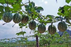 在元甘村,当地农民大面积的种植这样一种瓜,未成熟时瓜皮青绿色底覆白色斑点,一个挨着一个的吊在棚上,非常的漂亮,这就是吊瓜。其实吊瓜是一种名贵的中草药,有润肺化痰、降火止咳、宽胸散结、消肿祛毒、润肠通便功效。其实早些年,元甘村的农民都是以传统农业种植为主,只不过后来有一个村民在外地的时..
