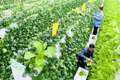 湖北日报讯 昨日,在十堰市郧阳区柳陂镇生态农业科技园内,农技人员在采摘无土栽培的蔬菜。近年来,郧阳区积极引进并推广无土栽培新技术,种植生态绿色蔬菜。无土栽培已成为当地农业增效、农民增收的新亮点。(视界网 曹忠宏 摄)