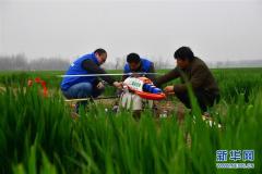 3月24日,在河南省信阳市平桥区龙井乡,工作人员准备用植保无人机为小麦喷洒农药,防治病虫害。新华社记者 冯大鹏 摄3月24日,在河南省信阳市平桥区龙井乡,植保无人机为小麦喷洒农药,防治病虫害。