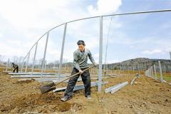 3月14日,卢氏县沙河乡果角村在建的大棚蔬菜基地。为加快群众脱贫步伐,今年沙河乡依托地域优势发展大棚蔬菜种植,一期计划在果角村建设蔬菜大棚300个,在三角村建设蔬菜大棚200个。目前,果角村大棚蔬菜基地正在进行大棚框架安装。 本报记者 张朝峰 摄