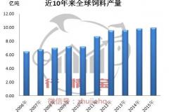 点击上方蓝字“猪价行情”!阅读本文前,请您先点击本文标题下面的蓝色字体“猪价行情”再点击“关注”,这样您就可以每天免费查询全国各地猪价、玉米豆粕价格以及最新的分析预测和猪市咨询哦!近十年来,全球饲料产量基本保持增长趋势,特别是2011年开始,饲料产量涨势突飞猛进,近五年来涨幅超过14%。2015..