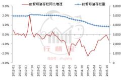 1、能繁母猪存栏行情宝跟踪农业部数据显示,截至2015年11月,全国能繁母猪存栏环比减少0.6%,同比减少12.4%,行情宝测算,目前全国能繁母猪存栏约在3827万头左右。这个数据意味着什么呢?能繁母猪存栏连续27个月下降!首先,这是自2013年末以来全国能繁母猪存栏连续下降的第27个月!能繁母猪存栏下降,就是..