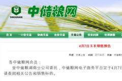 各中储粮网会员:受中储粮湖南分公司委托,中储粮网电子商务平台定于4月7日组织玉米竞价销售专场,具体详情请查阅相关公告和销售标的。中储粮网 2017年4月5日据说,之前发改委刚刚再次重申:在2017年5月至东北地区新产玉米上市前安排库存玉米销售,且不得打压市场!背景资料:中储粮网是中国储备粮管理总公..