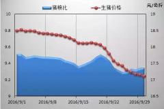 9月行情回顾猪价持续下降,中秋国庆均未能提振智农通APP·行情宝数据监测显示,9月份全国外三元生猪价格呈连续下跌态势,整体相对8月有较大幅度下跌。至9月27日,全国外三元生猪均价为17.36元/公斤,与去年同期基本持平。9月最高价为9月1日的18.49元/公斤。中秋节对猪价未能起到提振作用,节后猪价加剧下跌..