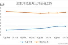 据蛋哥数据追踪,上周全国鸡蛋价格在低迷中出现了小幅反弹,5月5日全国均价2.3元/斤,较4月28日上涨了0.13元/斤;上周全国淘汰鸡价格整体呈现弱势震荡态势,5月5日全国均价2.76元/斤,较4月28日下跌了0.03元/斤。为啥蛋价能小幅反弹?蛋哥发现,主要原因是供应减少,在产蛋鸡存栏减少,五一假日又带动了养殖..