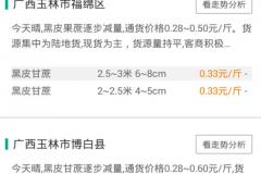下载手机一亩田,看农产品行情方便快捷!广西甘蔗大量上市,客商采购积极性非常高,走货较快,云南的甘蔗接近尾声,货源减少,客商逐渐前往其他产地买货,走货较慢。单位:元/斤2017/2/132017/2/14较昨日广西博白县黑皮甘蔗0.300.29-4.7%广东翁源县黑甘蔗0.430.430.0%广西宾阳县黑皮甘蔗0.310.310.3%湖北仙..