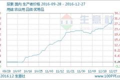 12月27日国内尿素市场价格连续三日呈现疯狂式跳跃上涨,华东、华北、华中多数厂家报价上涨50-80元/吨上下,主流出厂价多数跃上1600元/吨,部分临近1700元/吨上下,而两广市场价格则已经报至1850-1900元/吨。业内人士称,尿素下游市场需求明显好转,农业备肥热度提高。机构认为,2017年尿素等化肥出口关税或..