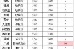现货报价玉米替代品理论进口完税价产销区深加工企业及港口玉米购销情况1、今日东北港口玉米价格稳中上行,锦州集港1460-1480元/吨,鲅鱼圈集港1430-1460元/吨,理论平舱1480-1530元/吨,较昨日提价10元/吨;广东港口稳中上行,散船新粮码头1610-1650元/吨,集装箱猪料玉米1730-1800元/吨;东北深加工企业挂..