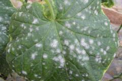 【典型症状】 黄瓜全生育期均可以感病。主要感染叶片、茎蔓。 发病初期在叶面或叶背产生白色圆形霉状物粉斑点, 从下部叶片开始染病,逐渐向上发展。严重感染后叶面会有一层白色霉层。发病重时感染枝干、茎蔓。 发病后期感病部位白色霉层呈灰褐色, 叶片发黄坏死。【发病原因】病菌以闭囊壳随病残体在土壤中越..