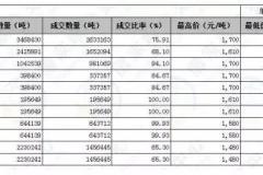 中储粮委托包干销售玉米交易结果显示,2014年产玉米总计划量1042539吨,成交量为981069吨,成交比率高达百分之94.10,最高价1700元每吨,比2013年产玉米最高价高出90元每吨。最低价1310元每吨,比2013年产玉米最低价高出100元每吨,平均价位1484元每吨,比13年产玉米高出121元每吨。最高价和最低价相差近500..