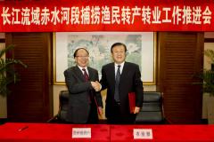 12月23日下午,农业部副部长于康震代表农业部与贵州省副省长刘远坤代表贵州省人民政府在北京共同签署《长江流域赤水河段捕捞渔民转产转业合作备忘录》。 本网讯 12月23日下午,农业部、贵州省人民政府在北京共同签署《长江流域赤水河段捕捞渔民转产转业合作备忘录》,宣布长江流域赤水河段捕..