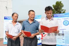 领到土地“身份证”,几名村民高兴地凑在一起看了又看。刘再扬 摄 农村土地承包经营权确权登记颁证昨日在阳东塘坪禾石村举行 阳江日报讯(记者/吴翠翠 通讯员/邹颋 冯国发)“以后,不管人走到哪里,不管地怎么流转,这几亩地还是我的,一点都不会少。”阳东县塘坪镇禾石村村民梁..