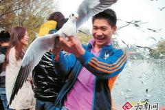 这么美丽的小精灵,你们居然忍心戏弄它!市民刘震 供图 近日,来昆越冬的海鸥越来越多,看鸥喂鸥的市民也增多起来,海鸥成了昆明冬日最美丽的一道风景。但是在看鸥的人群中,也出现了一些伤害海鸥的不文明行为。昨日,本报就接到市民热线,有人在翠湖公园、海埂大坝等海鸥密集的地方抓海鸥,昆明市野生动..