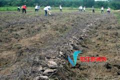 上图:村民在收获首乌。刘再扬 摄 阳江日报讯(记者/刘再扬) “平均一亩地可以产首乌3000斤左右,每斤的收购价2.8元,每年光靠种植六七亩首乌,我家的年收入就可以达到5万元。”近日,阳东县那龙镇两安村正在地里收获首乌的村民钟生说,首乌在那龙逐渐形成了规模化种植。 23日,记者在那龙镇的田间地..