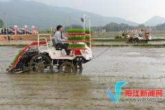 图:高效率的机械化插秧演示现场。梁文栋 摄 力争今年水稻机插率达11%,机械化综合水平达66% 本报讯(记者/梁宗具 杨晏彬)记者从昨日上午召开的全市春耕生产暨农机推广现场会获悉,今年我市将大力推广大棚机械育秧、机械插秧等机械化水稻生产作业,力争水稻机插率达11%。 现场会在阳东县大沟镇那金村金..
