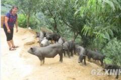 农村果园里养猪,猪撞树上了!