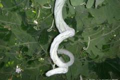 在院子的角落,农村习惯种点爬架的蔬菜,丝瓜,苦瓜,西葫芦之类。这几年开始流行种蛇瓜,胡同里有一家种蛇瓜后,给邻居分点,大家觉的好吃,那么明年这一条胡同多数都在种了,农村闲暇种菜还是有时尚可循的。蛇瓜也分好几种,有白色的,青色的,网纹的,远远看上去,像一条条蛇挂在藤上。蛇瓜开花也很独特..