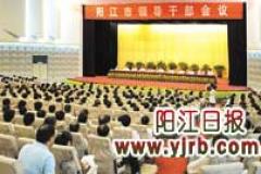 图:大会会场。李向东 摄 我市召开领导干部会议贯彻粤西会议精神,要求在七个方面实现突破 全力推进阳江经济社会加快发展 林少春作讲话 魏宏广主持 ■ 融入珠三角要..