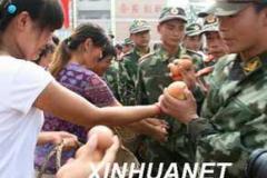 8月6日,在安徽省凤台县城内,群众拿着水果、饮料、鸡蛋等慰问品自发走上街头,欢送武警安徽总队官兵回营。 新华网北京8月15日电 国务院总理温家宝15日主持召开国务院常务会议,研究部署抗灾救灾工作。 会议指出,今年以来,我国气候异常..
